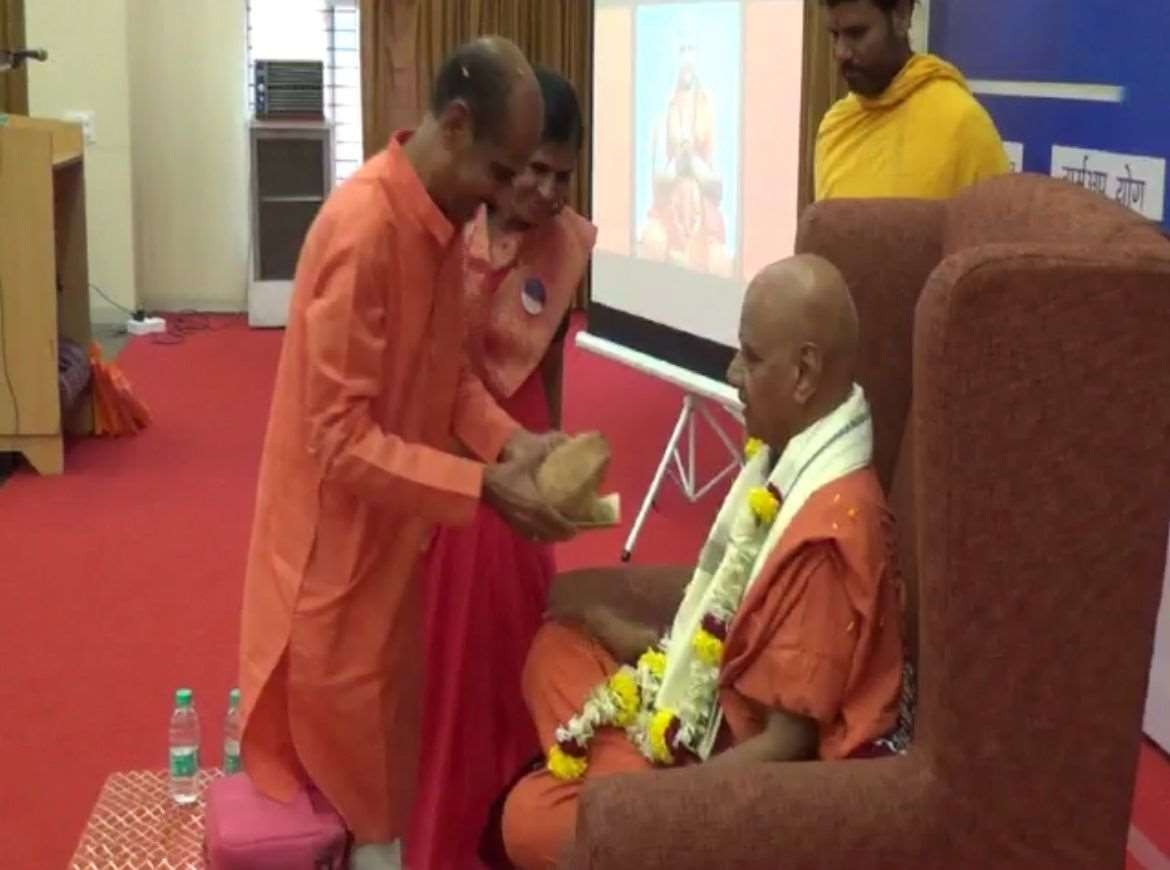 Suryakantji Somani and Urmilaji Somani took the honor of felicitating Swami Govinddev Giriji Maharaj, expressing their gratitude for his presence and blessings.