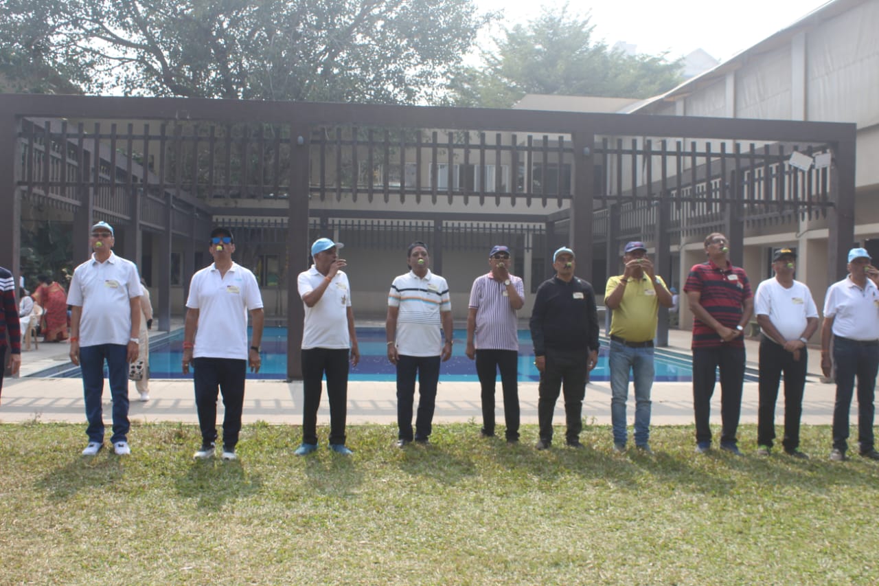 Chief Guest officially inaugurated the event by lighting Torch (Mashal) and taking a round around Sports Arena along with all members. This was followed by Rashtrageet and Hasya Yoga by Jagdish Rathi. Outdoor games (separately for Male and Female) namely Ring throw, Lagori, Rassi -khech, Talyat- Malyat, Lemon Spoon were conducted in the Pre-lunch session.