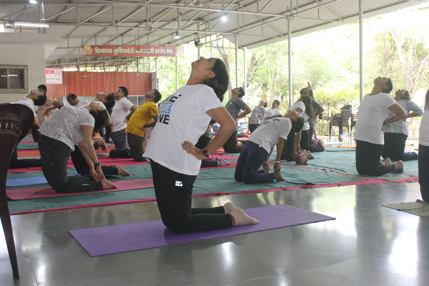 Sunandaji explained important concepts or QRT (Quick Relaxation Technique), IRT (Instant Relaxation Technique) and DRT (Deep Relaxation Technique) and taught those concepts through different yoga postures.