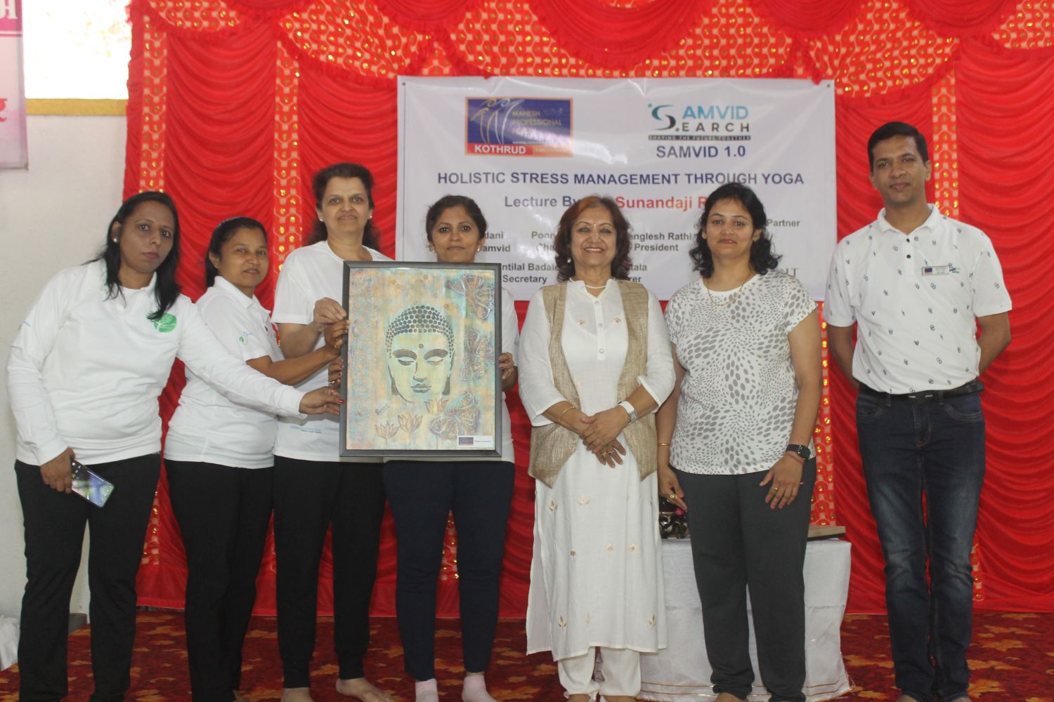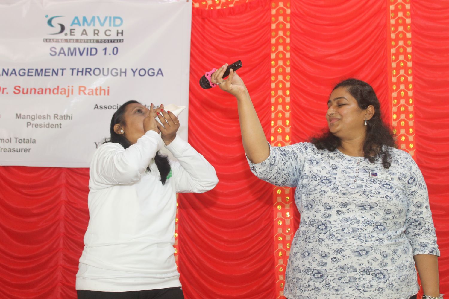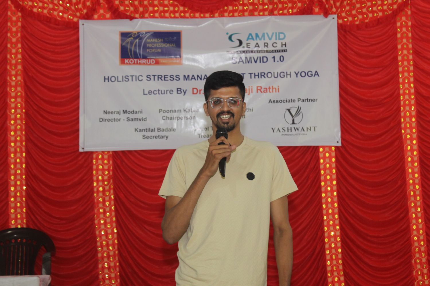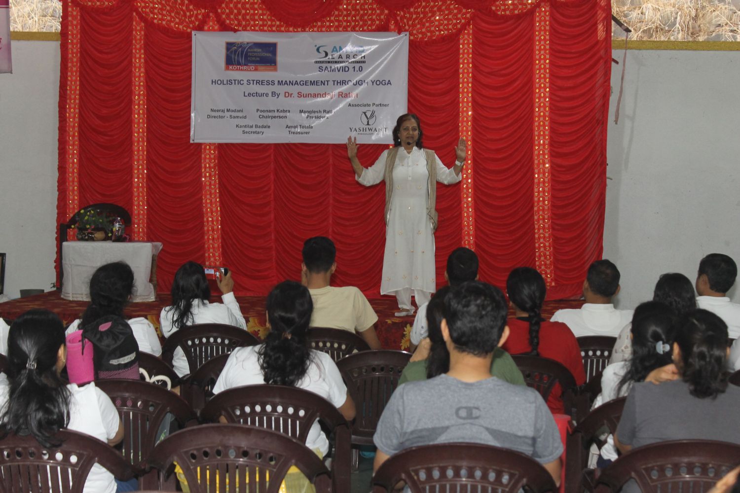 Samvid 1.0 was organized at Ramdevbaba Temple, MIT College, Kothrud. Dr. Sunandaji Rathi, who herself is a yoga researcher, and a visionary in the field of wellness and education, demonstrated her knowledge and experience and guided the participants on managing the stress through yoga.