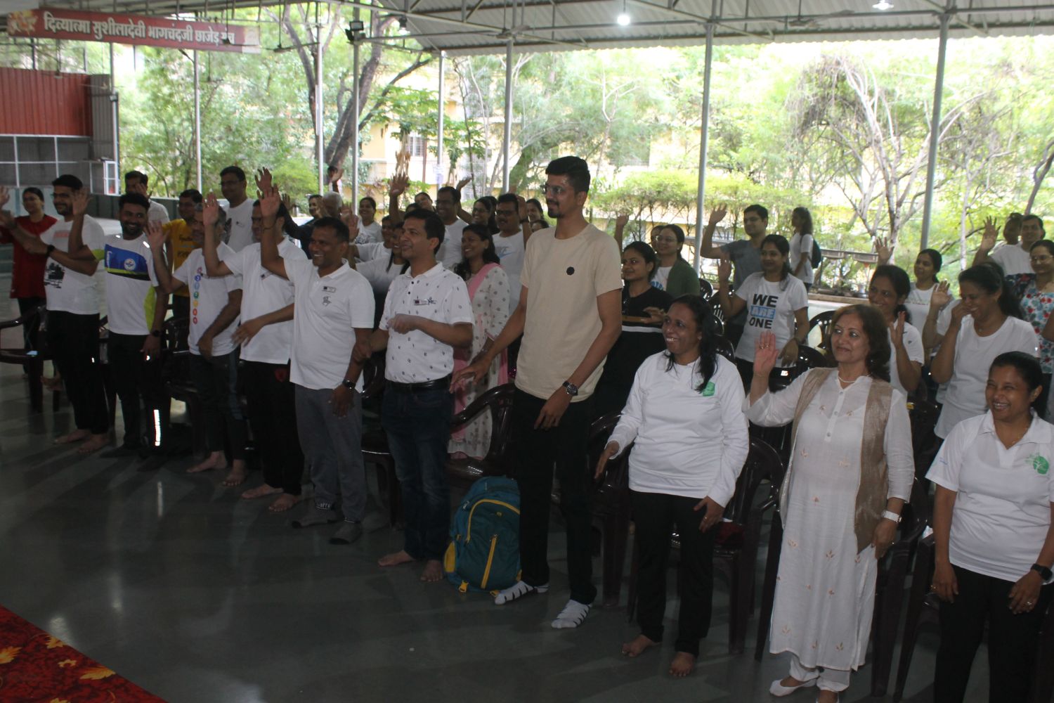 The morning of 25th June, 2023, the pure spiritual arena, the cool breezy weather, sound of peacock, likeminded people and a perfect trainer for one motivation, fitness. The occasion was, the first session of Samvid “Holistic Stress Management through Yoga”.