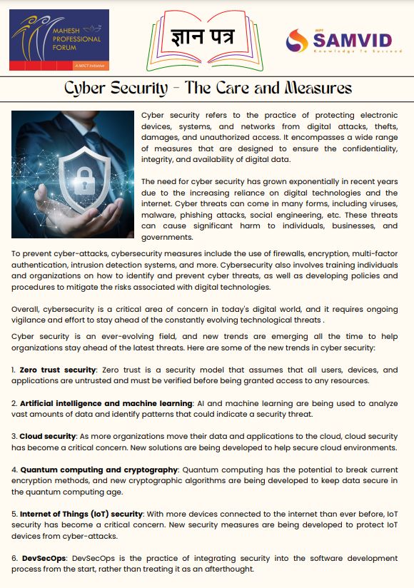 Cyber Security – The Care and Measures